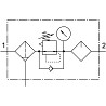 блок подготовки воздуха frc-1/4-db-7-mini комбинация фильтр, регулятор давления, маслораспылитель, макс. выходное давление 7 бар, 40 мкм. с манометром. регулятор давления с прямым управлением. размер=mini, ширина=88 mm, серия=db, фиксатор привода=поворотная рукоятка с фиксацией, положение при сборке=вертикально +/- 5°