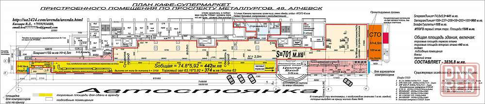 - третий этаж 440м.кв. – отдельный вход.