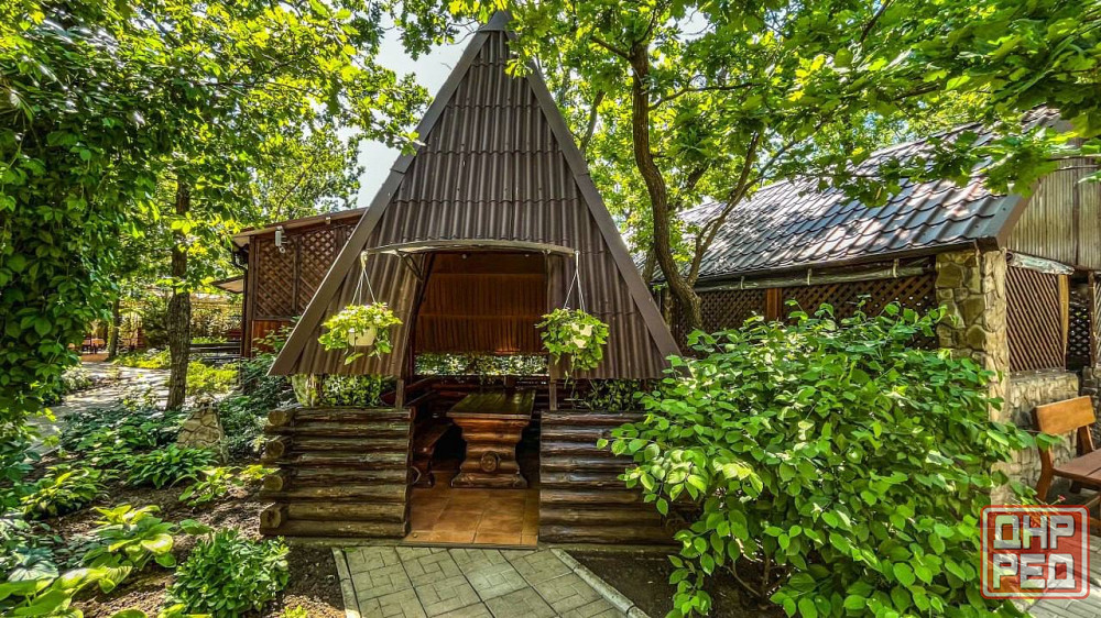 1 просторная беседка с большим круглым столом на 12 человек.