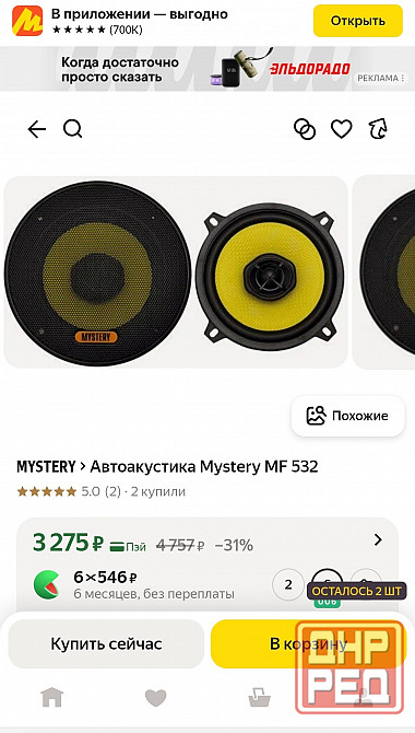 в продаже новая в упаковке автомобильная акустика mystery mf 532