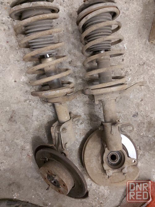 стойки в сборе с кулаком, ступицей, пружиной, опорником, тормозным диском, щитком пружины боль-мень, амортизаторы не помню состояния, пыльники рассыпались.