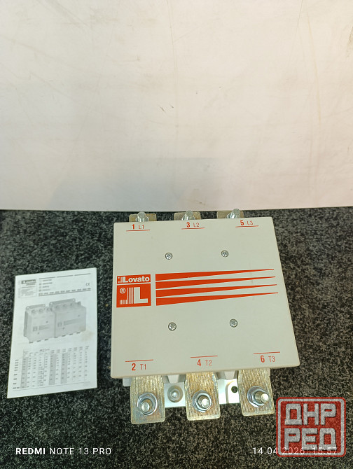 контактор новый фирмы lovato b630 подключение двигателя до 335 квт, активную энергию держит до 800а, катушка управления 220-240 в, к ниму идёт блок вспомогательных контактов g350.