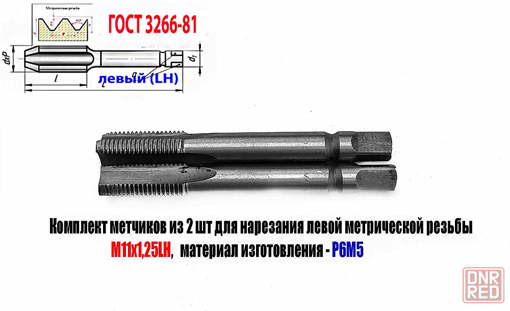 . метчики машинно-ручные м/р левые lh комплект из 2 шт №1 - черновой, №2 - чистовой, изготовленные по гост 24705-81 из быстрорежущей инструментальной стали р6м5, предназначены для нарезания метрической м левой резьбы в особо прочных, нержавеющих, огнеупорных и легированных конструкционных сталях и материалах ручным способом с использованием воротка метчикодержателя, а так же на станках общего назначения.