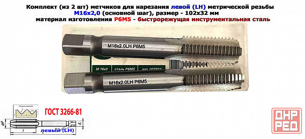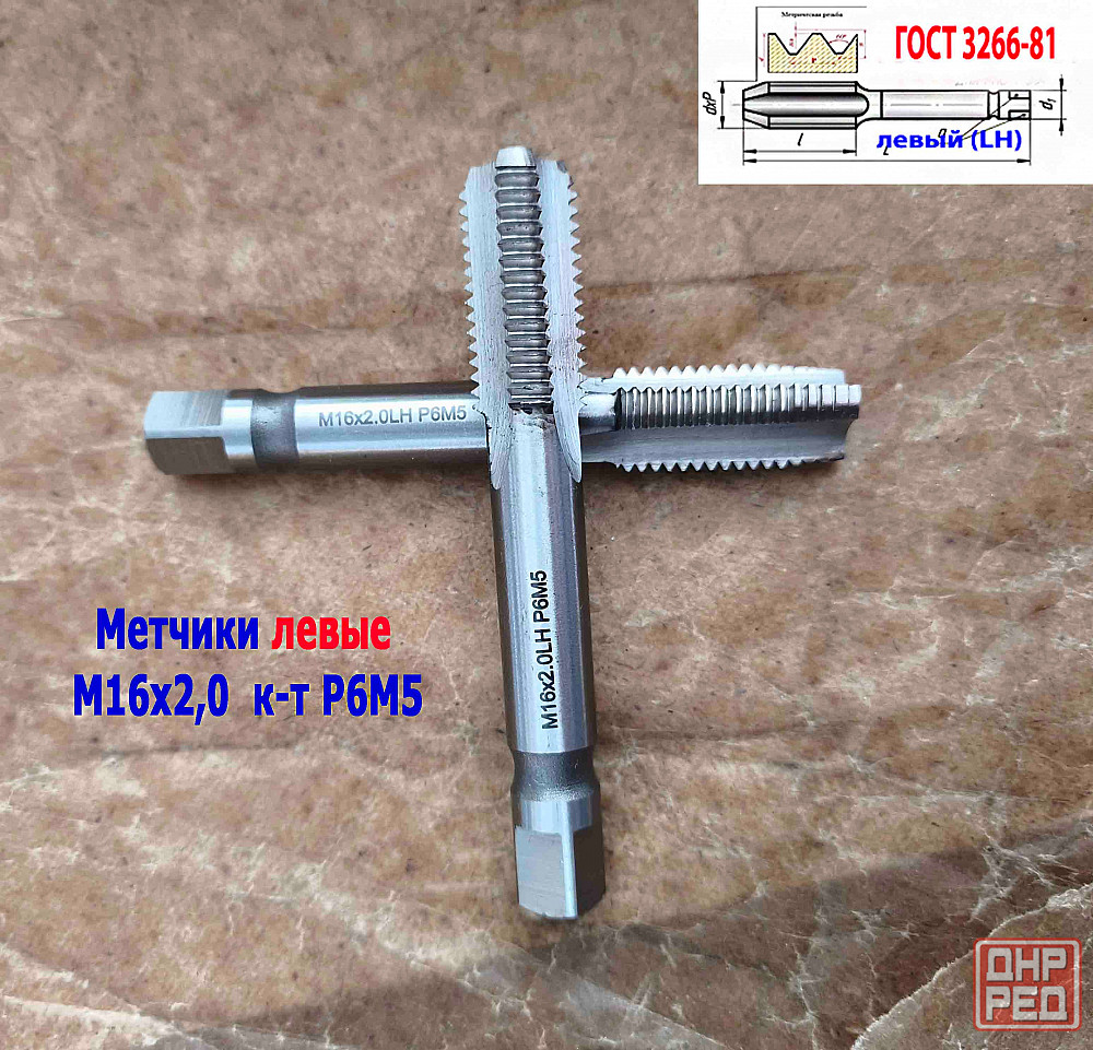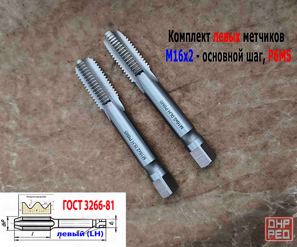 . метчики машинно-ручные м/р левые lh комплект из 2 шт №1 - черновой, №2 - чистовой, изготовленные по гост 24705-81 из быстрорежущей инструментальной стали р6м5 , предназначены для нарезания левой метрической м резьбы в особо прочных, нержавеющих, огнеупорных и легированных конструкционных сталях и материалах ручным способом с использованием воротка метчикодержателя, а так же на станках общего назначения.