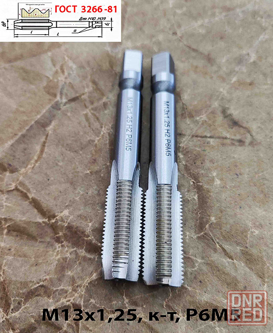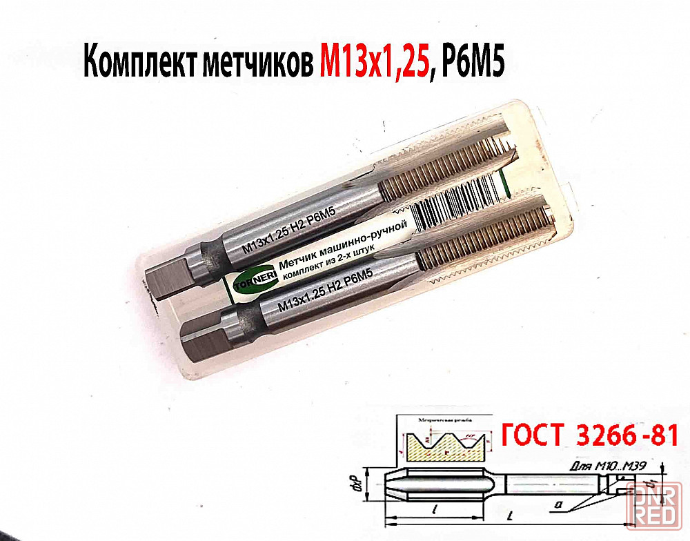 метчики машинно-ручные м/р, шлифованный профиль резьбы, комплект из 2 шт. №1- черновой, №2 - чистовой, изготовленный из быстрорежущей инструментальной стали р6м5, для нарезания метрической м правой резьбы, особенно в особо прочных, нержавеющих, огнеупорных и легированных конструкционных сталях и материалах, с помощью станков общего назначения или ручным способом с помощь воротка метчикодержателя.