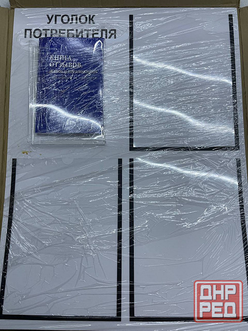 новый в упаковке. уголок потребителя, покупателя, для ип, стенд информационный 490*650 мм с 3 плоскими карманами а4 и 1 объемным карманом а5 + комплект книг 3 шт.