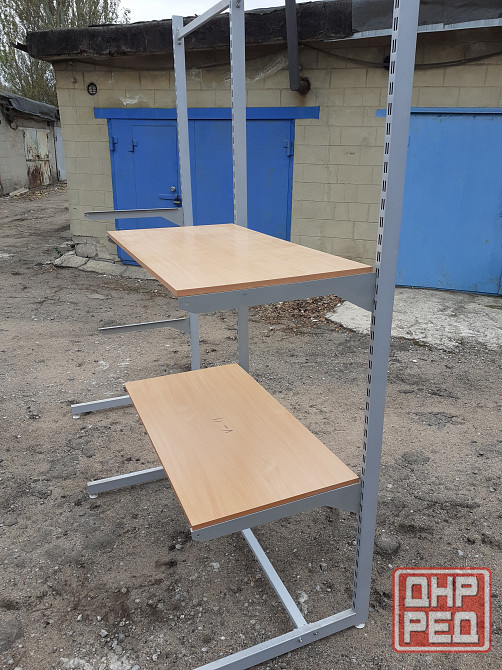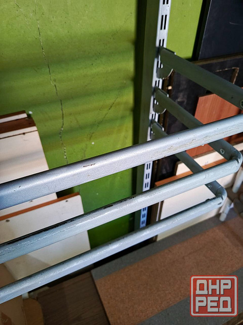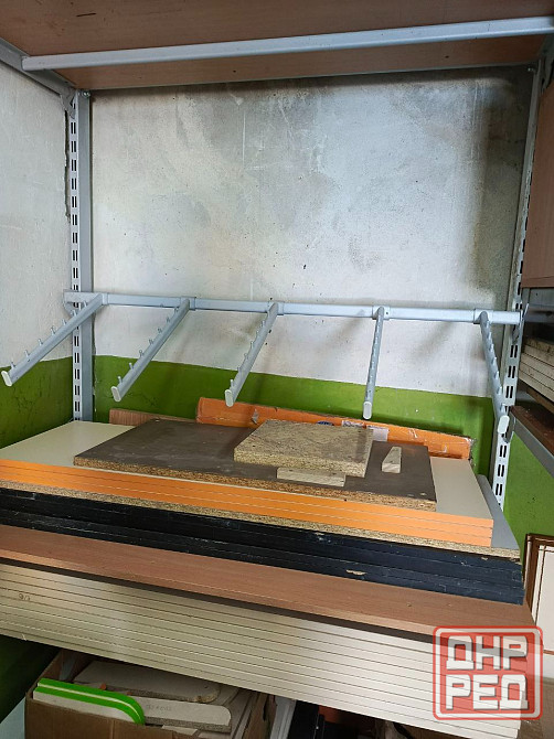 торговое оборудование б/у для магазина, склада, иного помещения. высота стоек 2,5м.кронштейны под полки глубиной 25-50 см. полки дсп 19мм.. так-же в наличии вешалы под тремпеля, сетки, крючки.