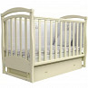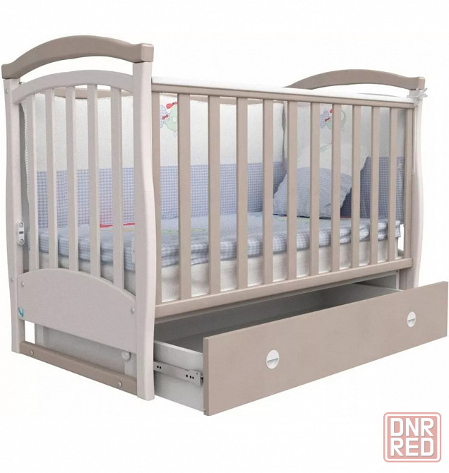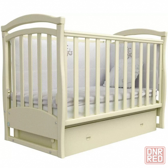 изготовитель veres, материал бук, цвет слоновая кость. длина спального места 120 см, количество уровней дна 2, ящики 1 шт., тип механизма качания маятник, накладки-прорезыватели, тип днища реечное, колеса, направление качания поперек, стопор колес.