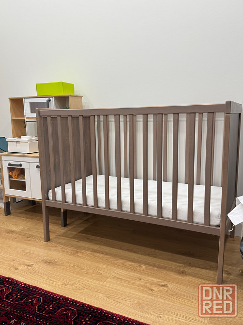 продам детскую кроватку икеа хэмнес, в отличном состоянии. матрас в комплекте, детская премиум серия матраса икеа, 2 простыни, одеяло, пододеяльник. всё икеа. можно вынести не разбирая, в дверь проходит. есть грузовой лифт в доме. деревянная. цвет серо-коричневый.