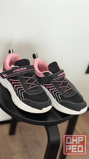 милые кроссовки для девочки в черном цвете с розовыми акцентами. кроссовки не носились на улице, были ношены только на уроки физкультуры. состояние очень хорошее. все целое, в идеале