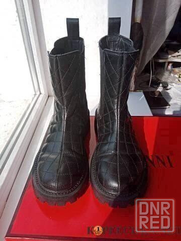 демисезонные кожаные полусапожки 36 р-ра длина стельки 23 см. на девочку 10-12 лет подошва мягкая удобная в хорошем состоянии. кожа натуральная с покрытием водостойкая. высота полусапожек от пола 19 см. по бокам резинки.