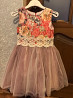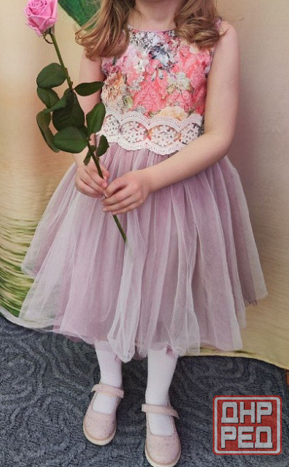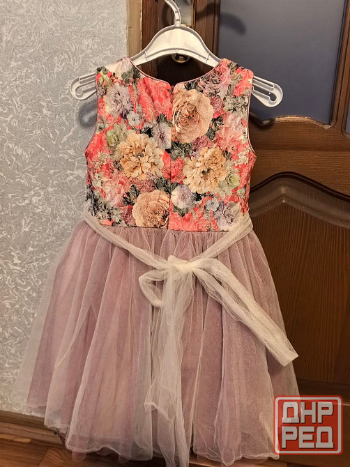 праздничное платье бренда regina, размер 116 см 6 лет. платье разноцветное с цветочным узором на верхней части и пышной юбкой из фатина. в хорошем состоянии. длина 65 см
