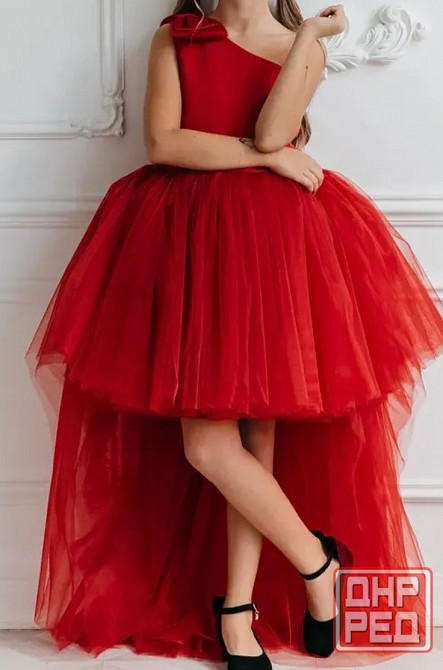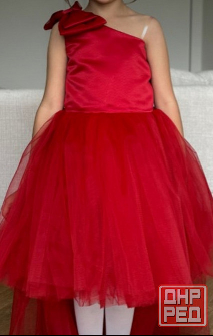 платье со шлейфом новое, не подошло по размеру.на ребенка или девушку ростом до 156см. в талии до 63 см. цвет классический красный.