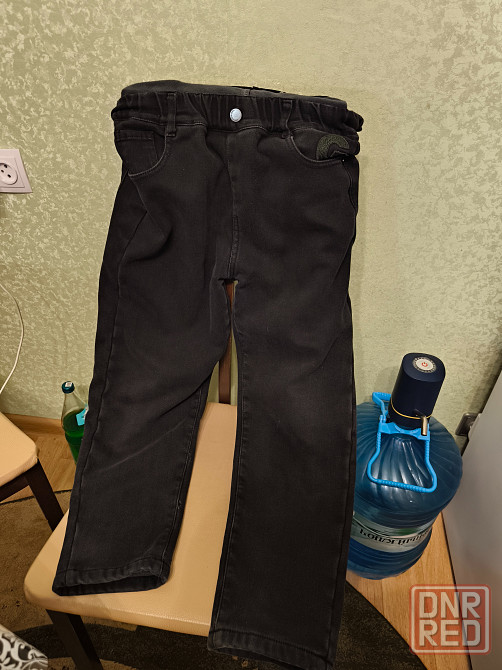 джинсы на флисе, черного цвета, очень теплые, можно зимой носить без подштаников. размер на рост 146 см., можно раньше или позже, зависит от комплекции ребенка.