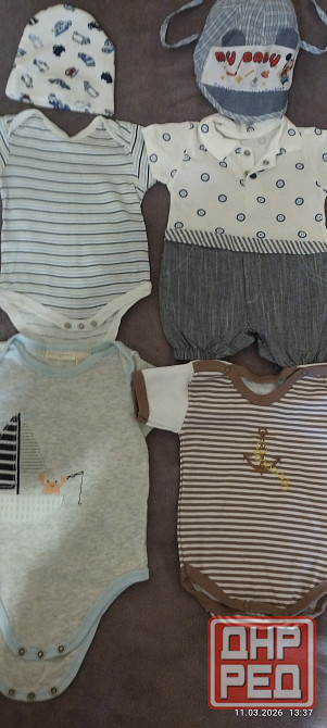 продам 2 боди от 0-3 мес и один от 3-6 мес,, один песочник ни разу не надевали для мальчика размер 56-62 на 0-3 месяцев, в подарок 2 шапочки. забрать все за 650 руб.