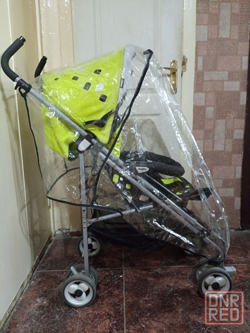 в хорошем состоянии, в сложенном виде занимает мало места. спинка регулируется в нескольких положениях. передние колеса поворотные, можно зафиксировать. тормозная система на задних колесах, все механизмы рабочие. в комплекте есть дождевик. комбинезонв подарок. донецк, ленинский р-н, ориентир - рынок на мирном. могу привезти, по договоренности. цена -4500 руб. торг уместен. тел.
