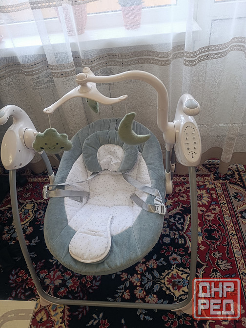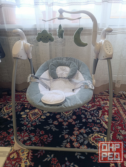 качель была в эксплуатации 3 месяца. состояние новое. 8 режимов скорости, 10 мелодий колыбели, есть таймер, звуки природы. чехол съёмный. есть пульт управления.