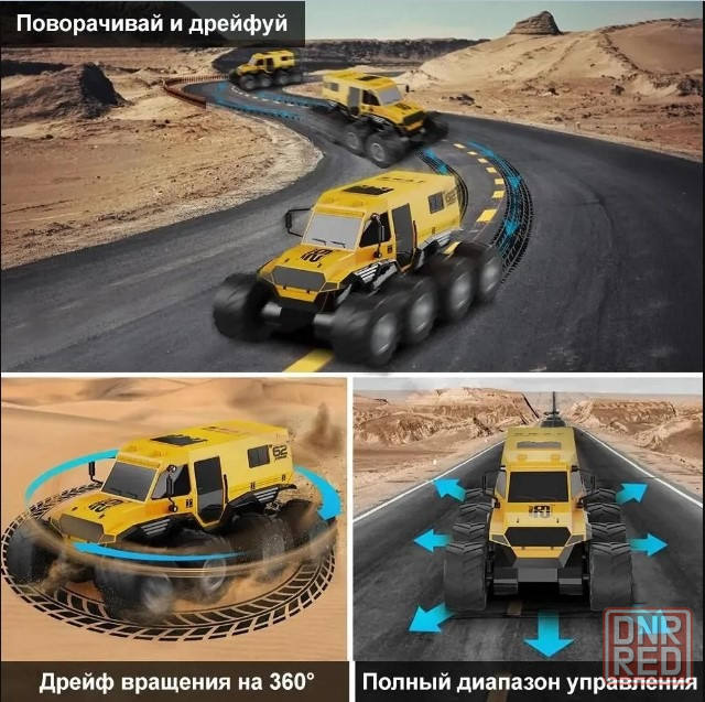 мощный радиоуправляемый полноприводный внедорожник 8х8 – большая машина готовая к любым испытаниям, песок, камни, грязь, трава, снег, вездеход уверенно чувствует себя на любом бездорожье