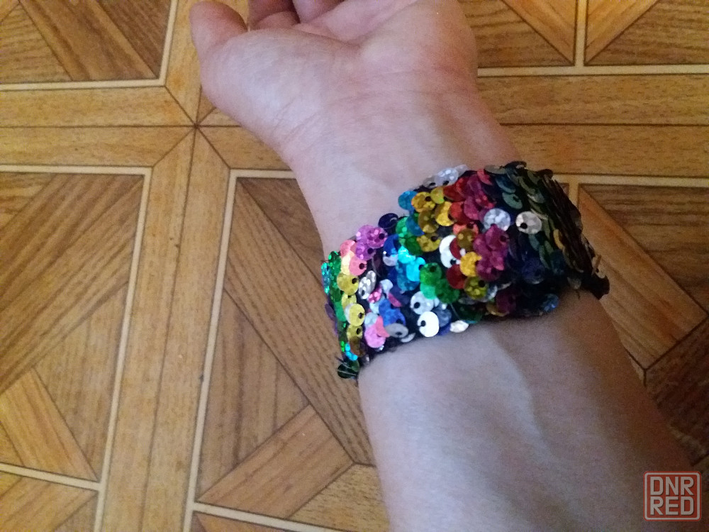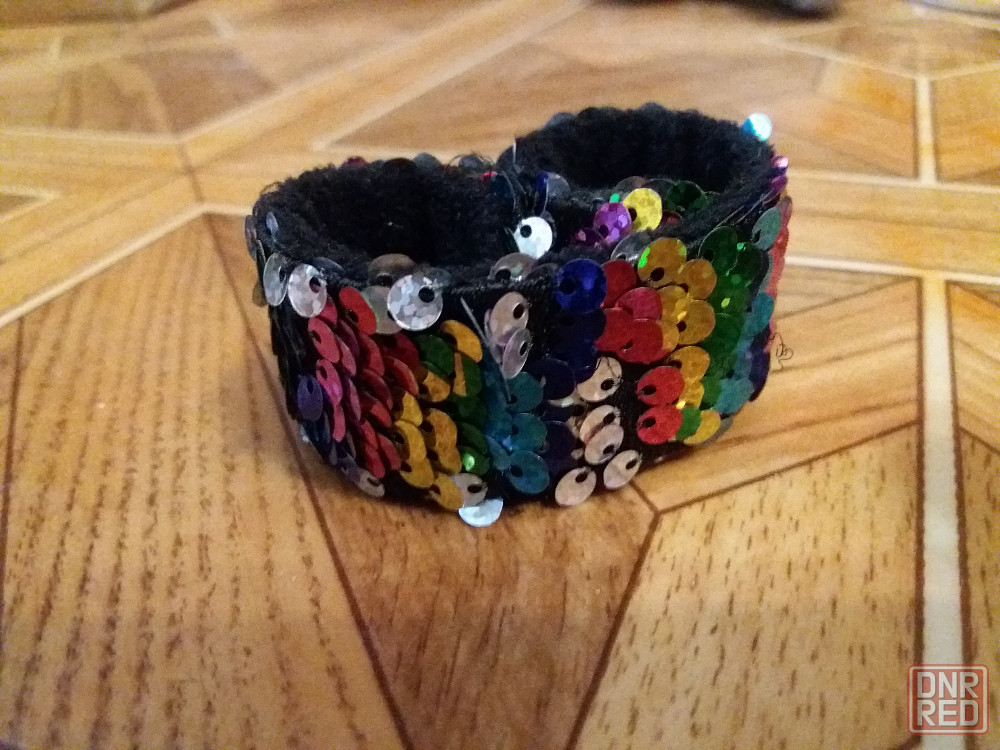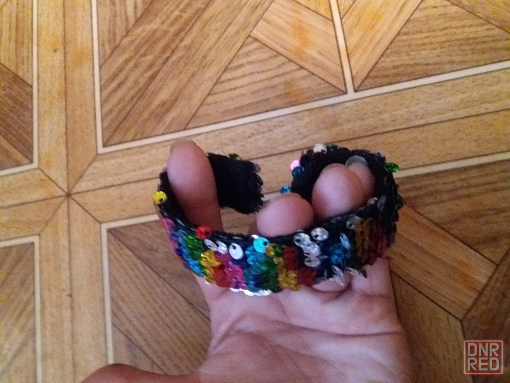 продам браслет для девочки. с одной стороны бархат. с другой стороны блестки. ширина 2,5 см. общая длина 21 см. сам скручивантся на нужный объём руки. состояние отличное. звоните. фен 529 9745. есть телеграм. смотрите все мои объявления.