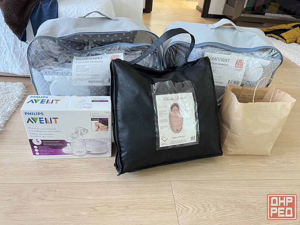 два комплекта в детскую кроватку и конверт даже не использовали, молокоотсос в отличном состоянии, но без бутылочки, цена указана за все вместе, цена просто подарок, кому нужно звоните.
