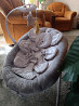 https://ozon.ru/t/olqo7sf вот такой, описание соответствует. по сути подходит не с первых дней, а месяцев с двух и до килограмм 9 максимум, совсем малышу в нем будет неудобно. наша просидела на нем месяца три, пока не надоело просто лежать, от 15 минут до получаса в день, не особо любила смотреть мультики или просто лежать в нем