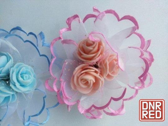 бантики на волосы с резинкой для девочки, очень красиво смотрятся , диаметр 9 см., а белый большой 12 см. цена за один бантик.