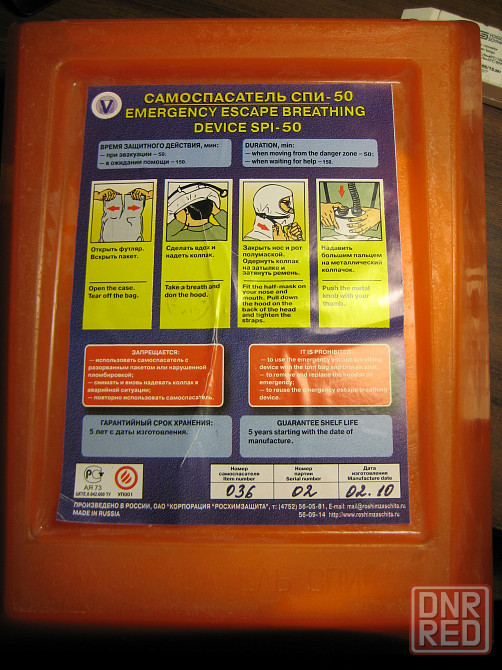 продам самоспасатель спи-50, предназначен для индивидуальной защиты органов дыхания и зрения от токсичных продуктов горения при эвакуации из помещений во время пожара. время защитного действия 50 мин. гарантийный срок закончился,