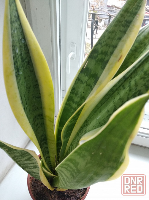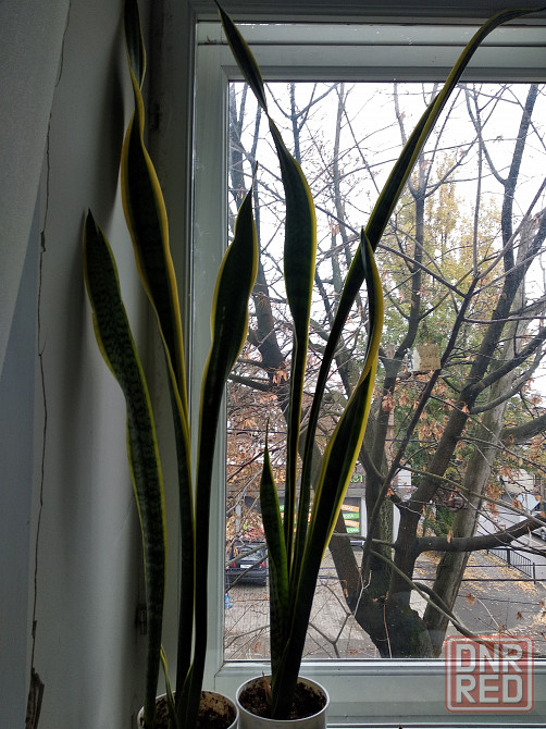 два сорта сансевьеры вариегатной. одна высокая - около 1 м. и средняя - около 40 см. у обоих плотные красивые листья. розетки в горшки отсажены более двух месяцев назад.