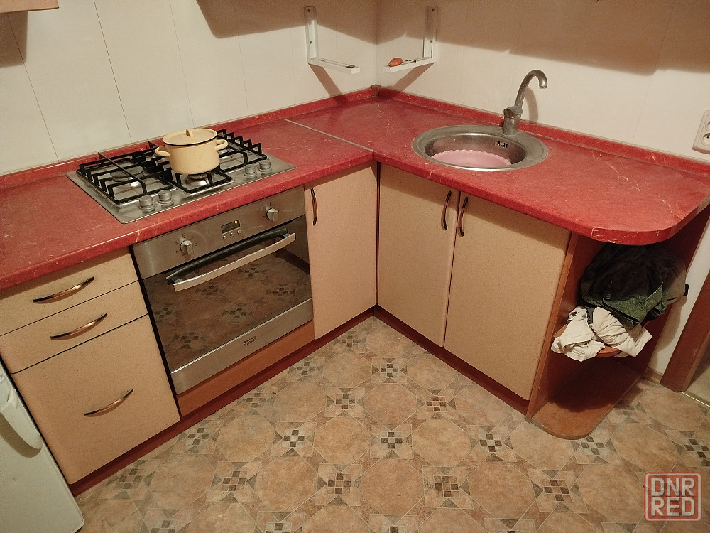 кухня с мойкой,краном и вытяжкойбез печки и духовки.есть подсветка!