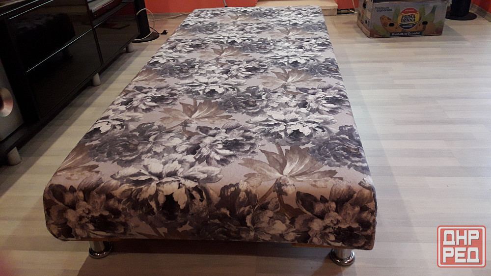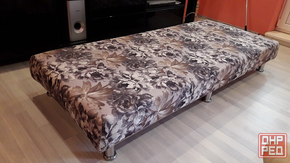 новый самодельный низкий диван, габарит 185*80 см. новая набивка из 2х слойного проклеенного мебельного поролона, новая обивочная ткань, снизу доска. тяжелый. на нем никто не спал. очень удобный и упругий. находится в донецке в р-не калининского рынка, 3й этаж. доставки и пересылки нет.