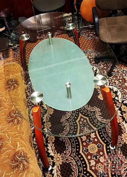 качественный стол закаленное стекло с матовой полкой. крупный, размер 1,5м х 0,9м.