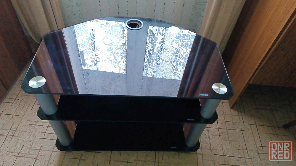 продам стол тумбу без сколов и царапин, состояние нового. стекло черного цвета. сверху можно ставить телевизор и т.д., присутствует кабель канал. 2 отделения. высота - 53, длина - 71, ширина - 46. высота между верхними полками 16, нижними 27. звоните смс не смотрю.