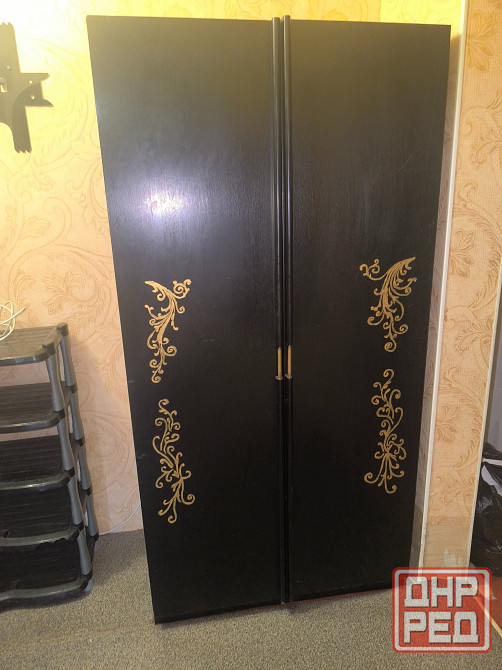 продаётся двухстворчатый шкаф в классическом чёрном цвете. высота 175 см, ширина 90 см, глубина 60 см. изготовлен из дсп, что обеспечивает прочность и долговечность конструкции. шкаф оснащён распашными дверями, которые функционируют без нареканий. на фасаде имеются лёгкие царапины, потёртости и пятна, что не влияет на его функциональность. внутри отсутствуют полки и штанги, но это компенсируется просторным внутренним пространством. идеально подходит для различных помещений