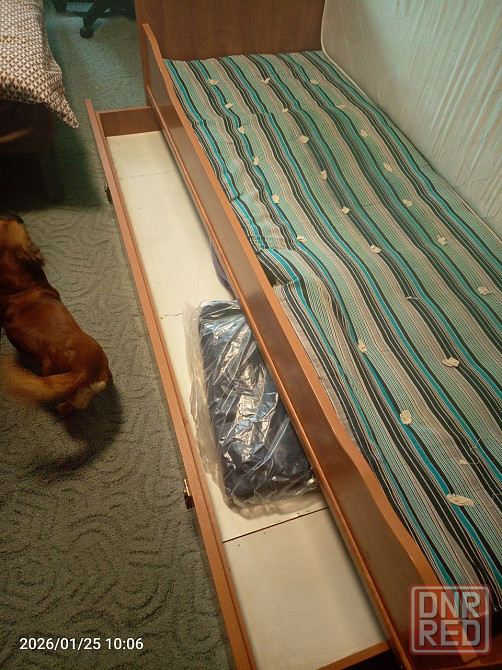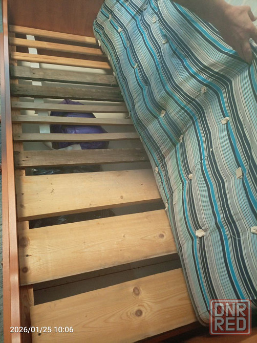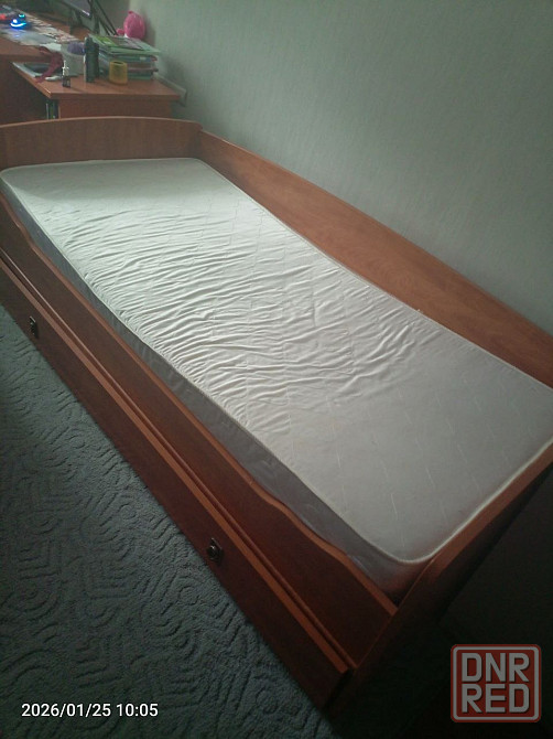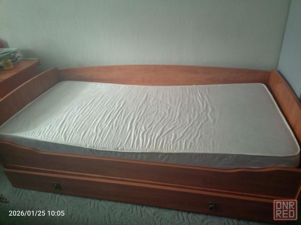 кровать с матрацем второй матрац в подарок. размеры 2,05м/1,0м спальное место 2/0,9. снизу кровати большой отсек для хранения вещей. ленинский район г. донецка. самовывоз.