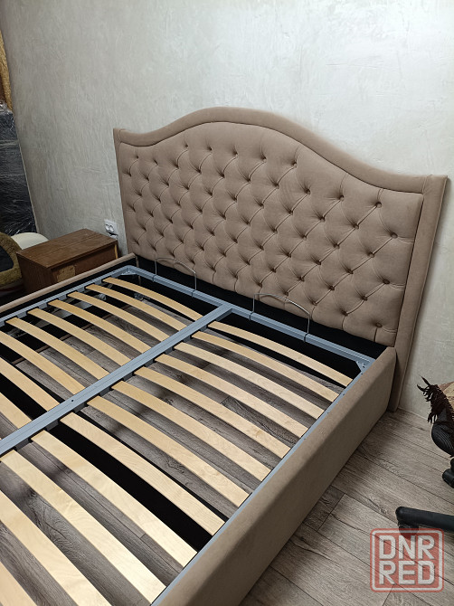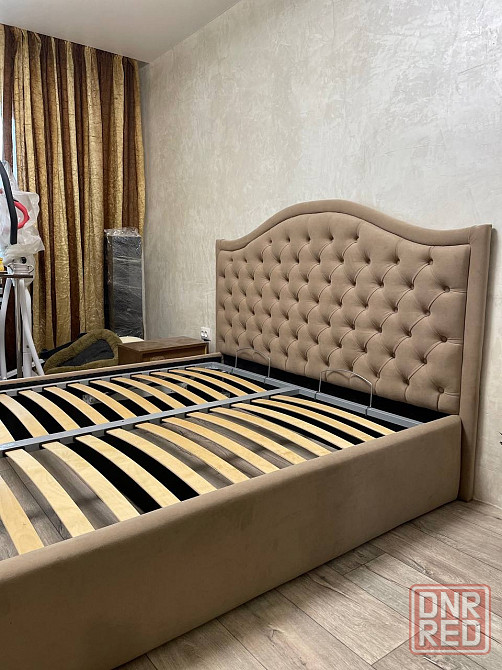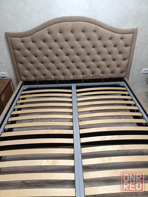 шикарная двуспальная кровать в каретной стяжка. выполнена из высококачественного велюра. украсит любой интерьер. очень удобная для сна. имеет большой короб для белья
