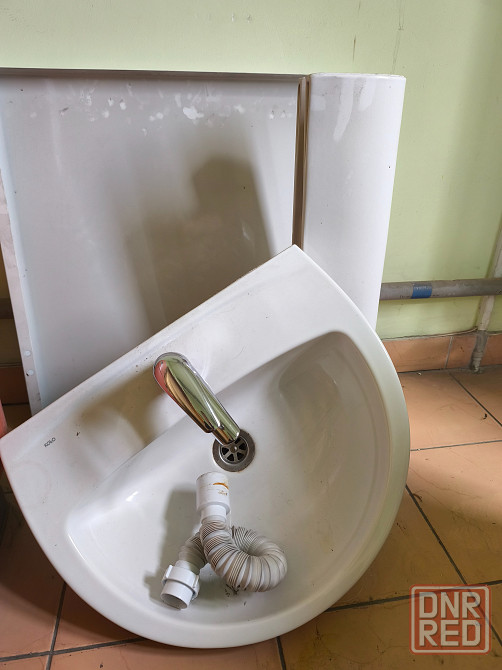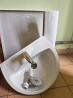 раковина kolo с пьедесталом смесителем и всей сантехнической системой для подключения в идеальном состоянии