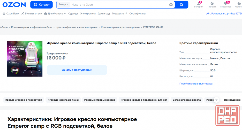 -функции: фиксация спинки в любом положении; поддержка поясницы.rgb подсветка.