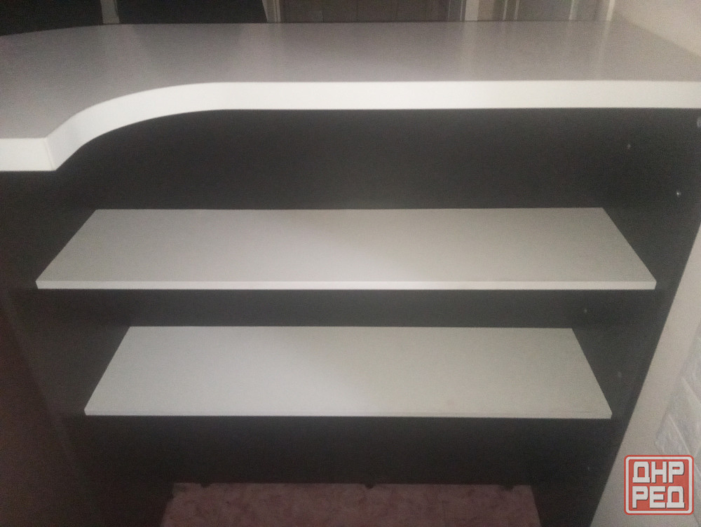 продаю стойку ресепшен, состояние хорошее, выполнена в черно-белом цвете, с внутренней стороны также находятся две полки на которых можно расположить кассовую технику, документацию и т.д.