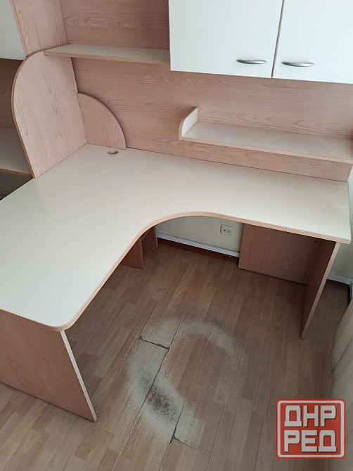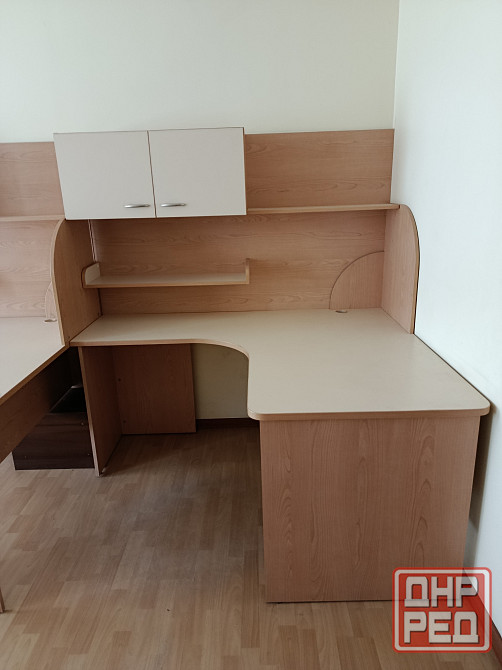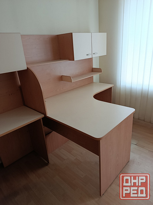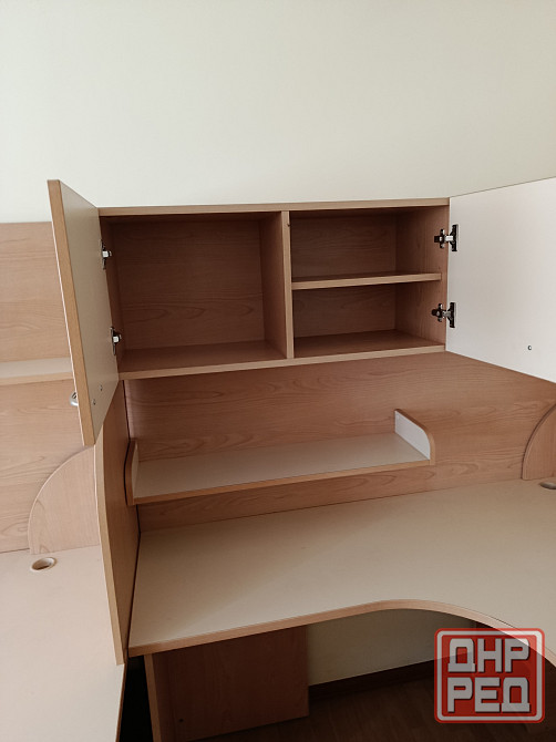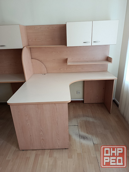 стол письменный с навесной полкой. подходит как для офиса так и для дома. габаритные размеры по максимуму столешницы 170×138 см. высота стола 80 см , высота с навесной полкой 177,5см . есть в правом и левом исполнении .
