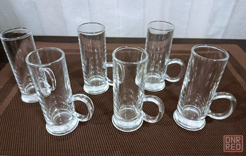 4. - набор стопок с ручкой для текилы, водки, коктейлей. высота 10 см диаметр верха стопки 3.5 см диаметр низа 4 см. 6 шт. отличное состояние. - 500 руб.