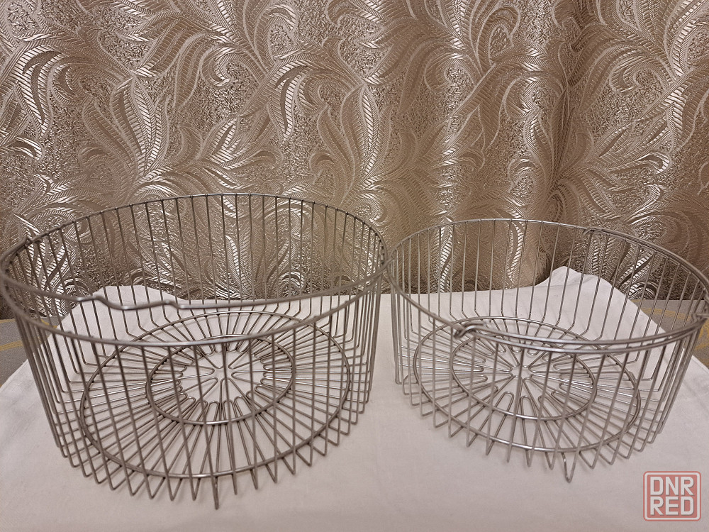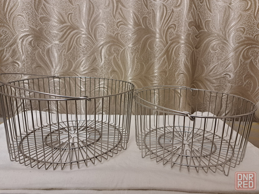 цептер помощники .корзины-сетки из нержавейки диаметром 21 высота -10см и 18,5 высота с ножками -9см,без ножек-8см см. .используются для мытья и варки овощей,при приготовлении на пару,фритюра,варке бульона,яиц,пельменей... и как фрутовницы для сервировки стола.в идеальном состоянии.