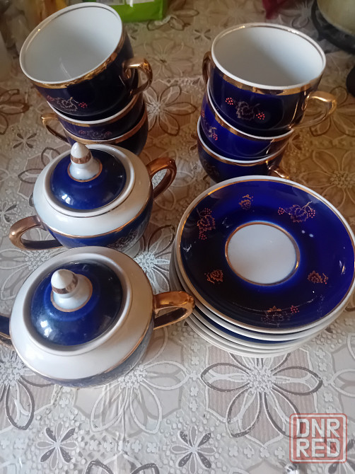 продам чайный сервиз синий,смородина", фарфор, довбышевский фарфоровый завод, кобальт, золочение, ссср, 1970-е. 14 предметов.