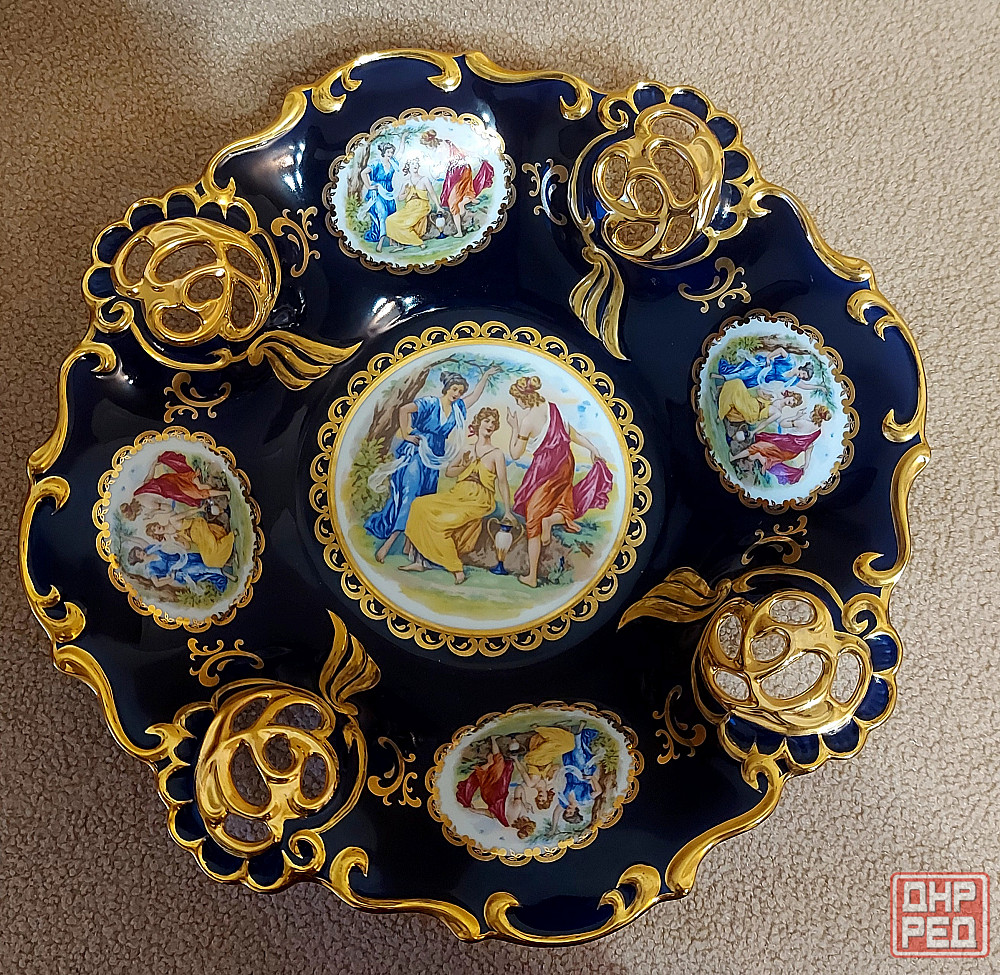 фруктовница мадонна кобальт, на ножках.чехия, на фото клеймо. абсолютно новая. диаметр 32,5 см. при покупке от трёх предметов небольшая скидка. в профиле есть другие изделия.
