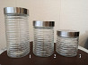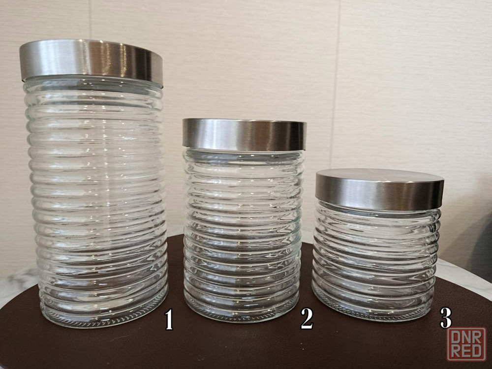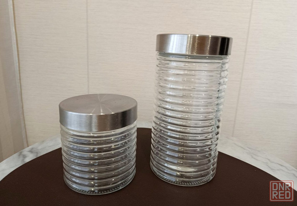1 - стеклянная банки для хранения сыпучих продуктов с крышкой из нержавеющей стали. подходят для хранения различных сухих продуктов, таких как крупы, сахар или печенье. крышка обеспечивает герметичное закрытие, сохраняя продукты свежими.