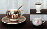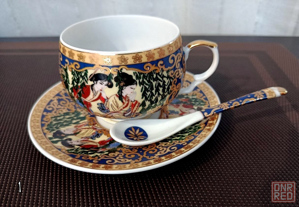 1 - фарфоровая чайная пара yamasen с ложкой, украшенная 24-каратным золотом.