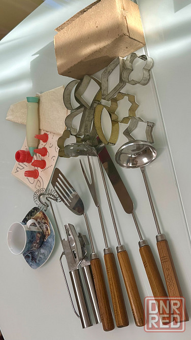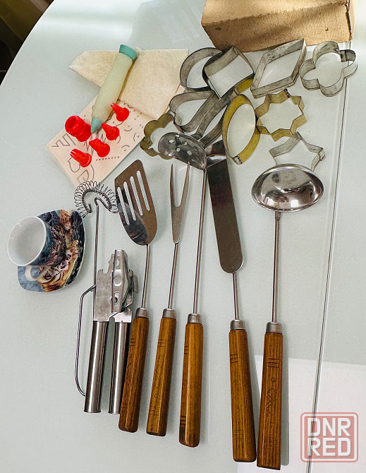 продам одним лотом кухонную утварь. кофейная пара - новая, остальное - б/у: формочки для печенья времен ссср, кондитерский шприц с насадками и трафаретами для выпечки, набор кухонных принадлежностей с деревянными ручками также времен ссср.
