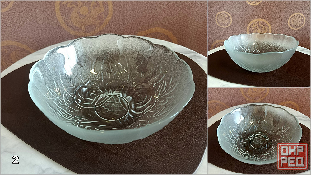 2 - стеклянный салатник с узором в виде роз для салатов, овощей, фруктов и ...