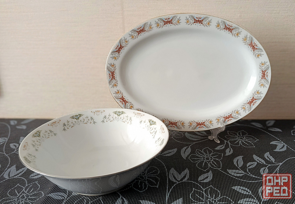 1 - овальное сервировочное блюдо с цветочным узором.