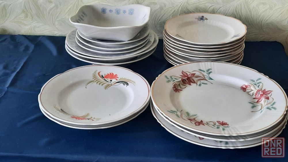 фото №2 и 3 плоские тарелки дружковского фз выполнены из белого фарфора с цветочным узором и золотистой каймой диаметр 24 см без потертостей, трещин и сколов . золотистая кайма сохранена. 3шт.-500 руб. фото4 ,5 фарфоровые тарелки производства завода северной кореи кндр времен ссср .полупорционные диаметр 20,5см 2 шт; плоская диаметром 19,5 см -1 шт.; плоская метром 16,5 см -3 шт.; салатник со стороной 16,5 см и высотой 4 см. посуда в отличном состоянии. цена 1000 руб. фото 6,7 фарфоровые плоские тарелки барановского фз в отличном состоянии , без потертостей и сколов , диаметр 20 см.2 шт. -300 руб. фото 8 тарелки ссср диаметром 17 см коростенского фз в отличном состоянии, позолота сохранена, не пользовались . всего 10 штук. цена 1000 руб.