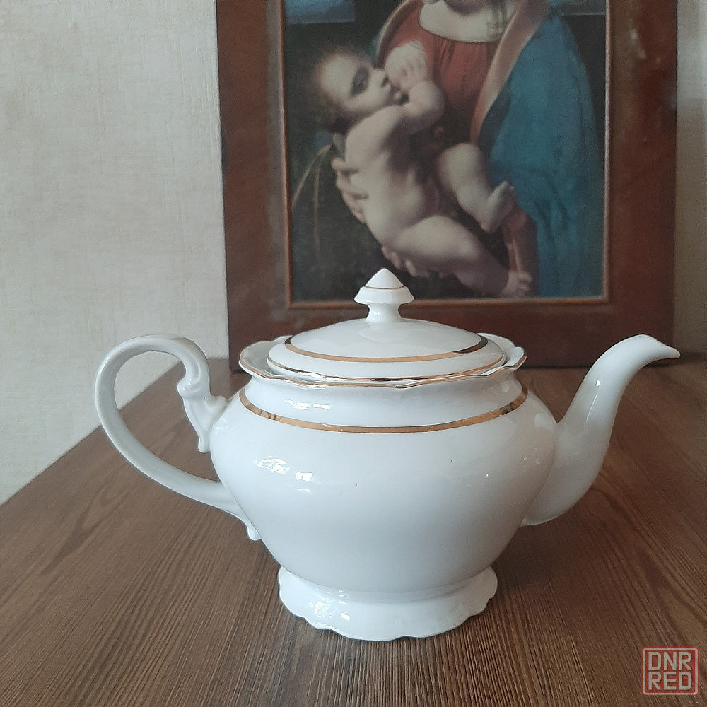 чайник фарфор заварочный большой . производство чехословакия . белый с золотом.
